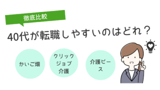 この記事では、介護の仕事を考えている40代の方に向けて、人気の介護転職サービス「かいご畑」「クリックジョブ介護」「介護ピース」の3社をわかりやすく比較しています。「資格がないけど大丈夫かな?」「40代からでも働ける?」と悩む方でも、自分に合...